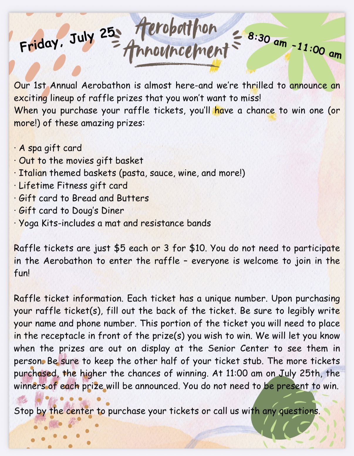 All events & fundraisers are open to the public and will be held at Parker Senior Center (10675 Longs Way) unless otherwise noted.